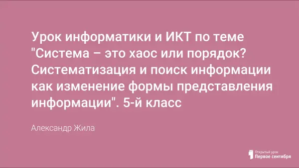 На уроке учащиеся акцентируют внимание на обработке информации, изменяющей форму представления, но не изменяющей ее содержания. Дается самое общее представление о систематизации и поиске информации. В ходе урока используются основные понятия: информация, обработка информации, систематизация, сортировка (упорядочение), поиск.