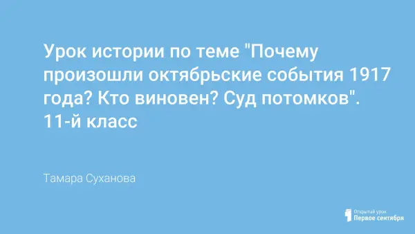 Повторяется тема «Революция 1917 года», закрепляются темы «Летне-осенний политический кризис 1917 года в стране», ««Полевение» народных масс и революционная ситуация в стране», «Октябрьские события 1917 года». Учащиеся самостоятельно ставят цели и ищут на них ответы в исторических источниках.