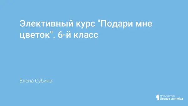 Программа «Подари мне цветок» предназначена для формирования практических умений и навыков у учащихся 6-го класса по уходу за комнатными и цветочно-декоративными растениями и их разведение. Она включает в себя знания по биологии и экологии. Курс обучения состоит из 17 учебных занятий.