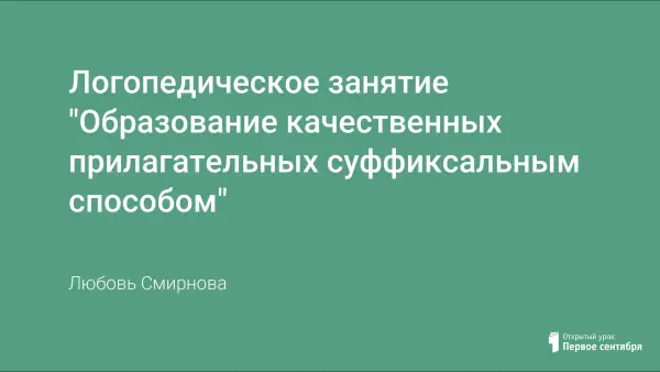 Занятие проводится с группой учащихся 2–3-х классов, имеющих недостатки чтения и письма, вызванных ОНР. На занятии дети овладевают навыками образования качественных имён прилагательных в группах суффиксов, усваивают правильные грамматические формы слов в словосочетаниях и предложениях.