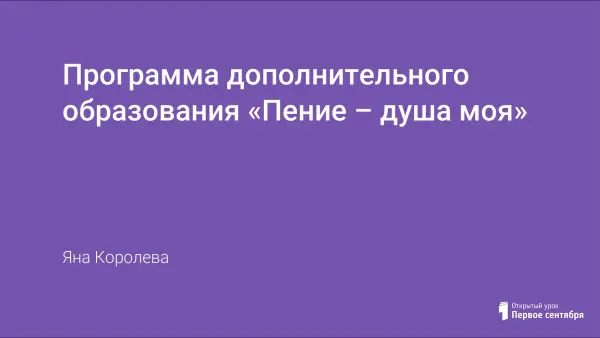 Цель программы. познакомить детей с вокальной музыкой, которая оставит след в сердце; способствовать формированию устойчивого интереса к пению, музыкально теоретической деятельности, воспитывать художественно-эстетический вкус.