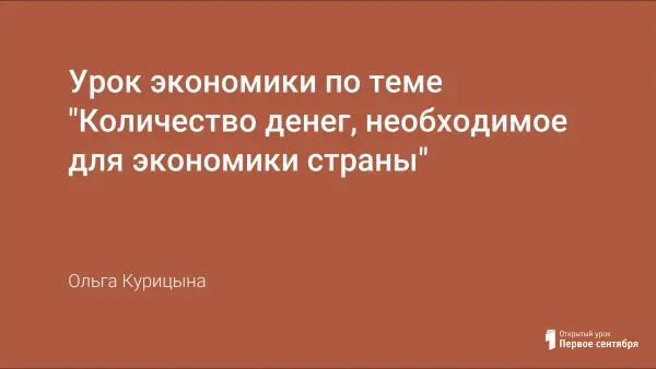 Урок относится к разделу «Деньги» Областной программы экономического образования школьников. В процессе занятия учащиеся должны вывести уравнение обмена и сформулировать понятие "скорость обращения денег", анализируя экономические ситуации.