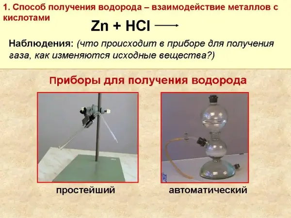 На уроке отрабатываются экспериментальные умения получения газов с автоматическими приборами, сбор газ методом вытеснения воздуха и воды, проверка горючего газа на чистоту; умение наблюдать, делать выводы и записывать результаты практической работы в тетради. Большое значение уделено правилам техники безопасности и подготовке к работе на предыдущем уроке.