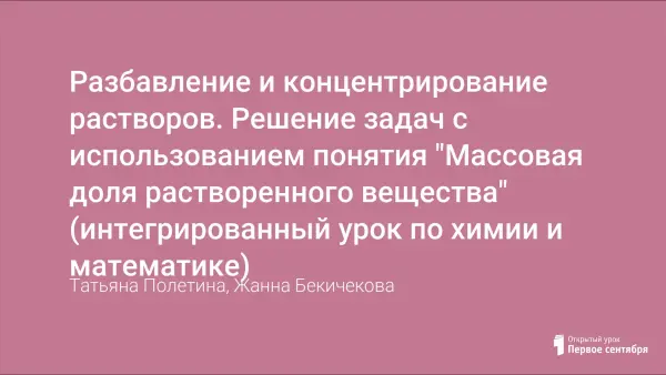 Интеграция является одним из приоритетных направлений в школьном образовании, так как позволяет формировать у ученика целостную картину мира. На уроке формируется умение готовить растворы путем разбавления и концентрирования исходного раствора, рассчитывать концентрации (массовую долю) двумя способами – по формуле и с помощью математической пропорции. Важность темы определяет и наличие соответствующих заданий в ГИА и ЕГЭ.