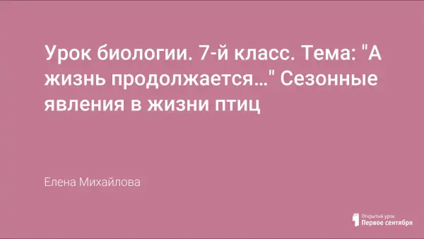 Урок биологии. 7-й класс. Тема: "А жизнь продолжается…" Сезонные явления в жизни птиц
