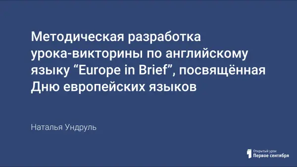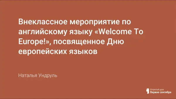 Презентация представляет собой интеллектуальную викторину о европейских странах и может быть использована на уроке английского языка в 9–11-х классах, посвящённом Дню европейских языков, на уроках страноведения, а также во время проведения декады английского языка. Во время игры у учащихся совершенствуются коммуникативные навыки, расширяется кругозор, развиваются навыки проектной деятельности, формируется уважительное отношение к людям и фактам иноязычной культуры.