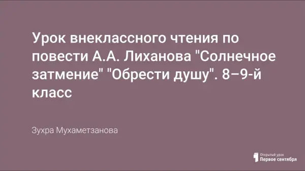 Урок-диспут по литературе знакомит учащихся с творчеством А.А. Лиханова и повестью «Солнечное затмение». Цель урока: совершенствование навыков вдумчивого чтения, формирование навыков дискуссии, воспитание чувства любви, сострадания и уважения к ближнему.