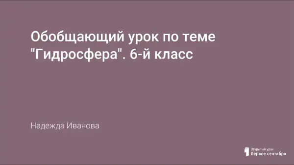 Методическая разработка обобщающего урока в 6-м классе по теме. Цель урока: выявить качество и уровень овладения знаниями и умениями, полученными на уроках по теме «Гидросфера». Урок проводится в форме игры-соревнования.