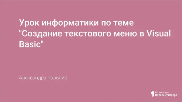 Урок формирует и развивает умения и навыки применения среды ООП при создании текстового меню для обучающее-контролирующей программы. Презентация содержит автоматическую анимацию, анимацию по щелчку, триггеры, а также интерактивные элементы и макросы.