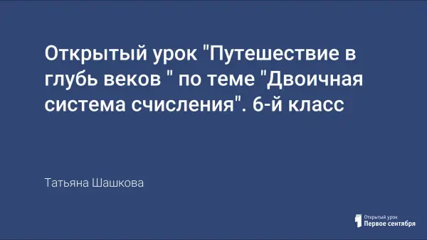 Урок повторения изученного материала проходит в форме путешествия в глубь веков. На протяжении урока неоднократно создаются проблемные ситуации, заставляющие учеников выдвигать гипотезы и обосновывать свои ответы. Предусмотрена небольшая практическая работа по переводу чисел из двоичной системы счисления в десятичную на калькуляторе.
