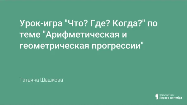 Урок-игра «Что? Где? Когда?» проводится в конце изучения темы, рассчитан на два академических часа и предполагает активную работу всех учеников за игровым столом либо на местах. Вопросы разного уровня сложности не только демонстрируют связь математики с жизнью, но и развивают мышление учащихся, учат их выдвигать гипотезы, обосновывать свои предположения, обобщать, делать выводы. Игра рассчитана на широкий круг учащихся.