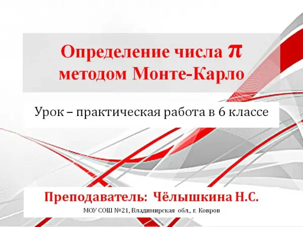 Практическая работа на тему "Определение числа П (пи) методом Монте-Карло". 6-й класс