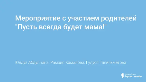 Мероприятие воспитывает уважительное отношение к мамам, желание помочь им. Участниками мероприятия становятся все присутствующие на празднике мамы. Им предлагается "побывать" на разных телевизионных каналах. Дети поздравляют своих мам с праздником выразительным чтением стихов. Поют песни, исполняют танцы. Мероприятие включает в себя развлекательные конкурсы, игры.