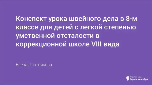 Конспект урока швейного дела в 8-м классе для детей с легкой степенью умственной отсталости в коррекционной школе VIII вида