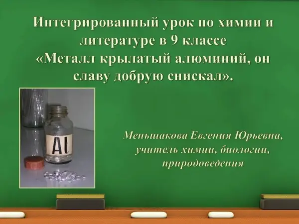 Интегрированный урок (химия и литература) по теме "Металл, крылатый алюминий, он славу добрую снискал". 9-й класс