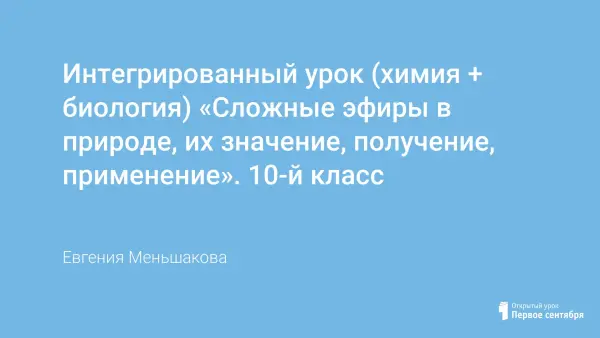 На уроке учащиеся систематизируют знания о сложных эфирах, знакомятся с их применением и значением в жизни общества, овладевают приемами исследовательской деятельности. Урок формирует научное мировоззрение и навыки межличностного общения при работе в группах, повышает мотивацию к изучению химии демонстрацией материала, воспитывает навыки эстетического восприятия природы.