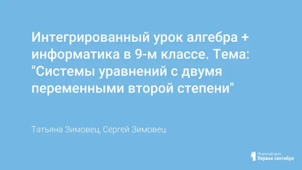 Интегрированный урок алгебра + информатика в 9-м классе. Тема: "Системы уравнений с двумя переменными второй степени"