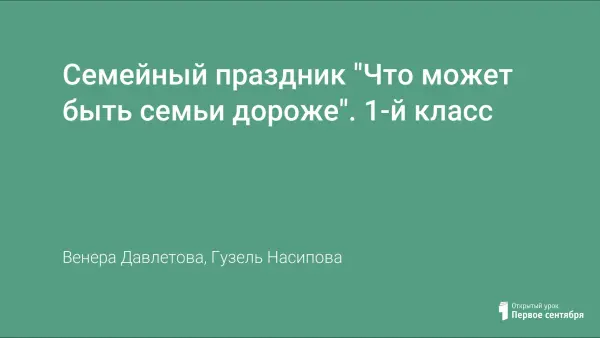 Семейный праздник "Что может быть семьи дороже". 1-й класс