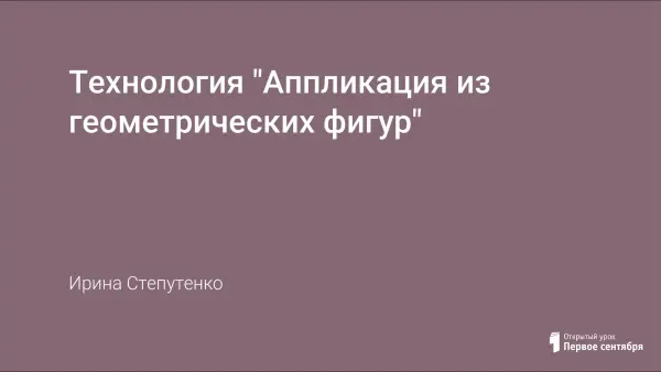 В основе урока технологии "Аппликация из геометрических фигур" лежит проблемное обучение. Цель урока - выполнить коллективную работу из геометрических фигур (техника оригами).
