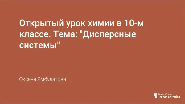 Открытый урок химии в 10-м классе. Тема: "Дисперсные системы"