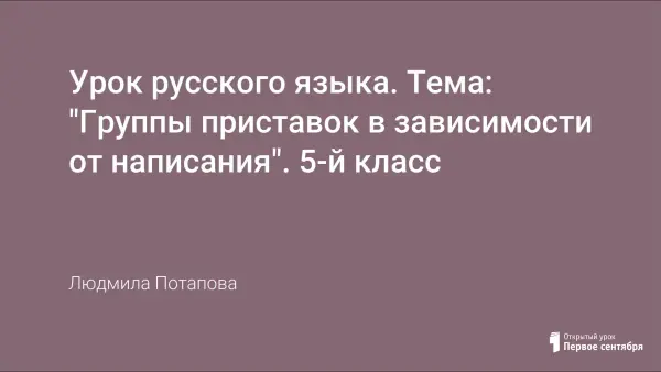 Урок русского языка. Тема: "Группы приставок в зависимости от написания". 5-й класс