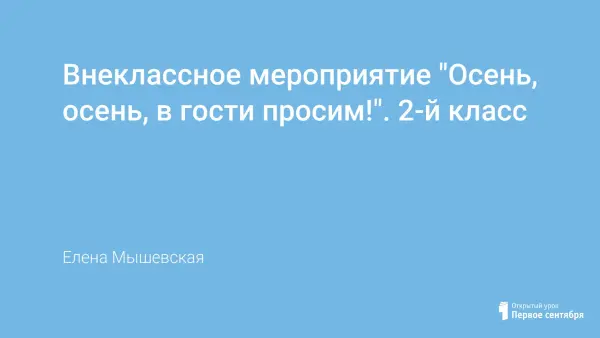Внеклассное мероприятие проводится с целью закрепления знания признаков осени. Учащиеся учатся рассказывать о своих наблюдениях в природе родного края, учатся ценить красоту природы, повторяют произведения русских поэтов, писателей об осени, инсценируют произведения А.Толстого, К.Д. Ушинского. Перед мероприятием проводилась большая предварительная работа: экскурсии в осенний лес, конкурсы рисунков, стихов, сочинений.