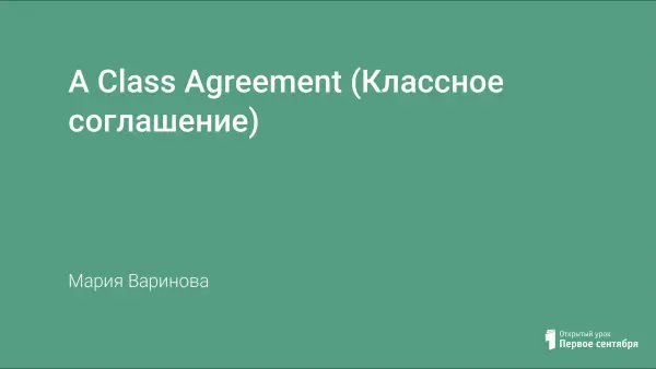 На уроке учащиеся в группах создают постеры с правилами поведения учеников 8-го класса (у каждой группы свой аспект), представляют их классу, обсуждают и выбирают положения, которые войдут в "Классное соглашение". Умения, которые развиваются на уроке: говорение, письмо, способность работать в группе, навыки презентации результатов своей деятельности. Ведущие технологии обучения - групповые, коммуникативные.