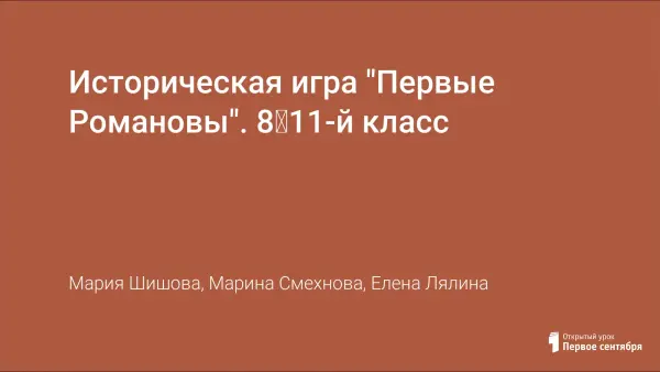 Историческая игра "Первые Романовы". 8‒11-й класс