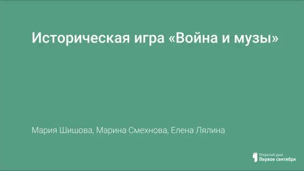 Историческая игра «Война и музы» рассчитана на учащихся 9–11-х классов. Активизирует знания по истории России ХХ века, посвящена Великой Отечественной войне, может быть проведена в предметную декаду, на уроках истории. Основана на применении различных педагогических технологий: игровой, здоровьесберегающей, информационной.