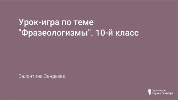 Игра проводится в 10-м классе после прохождения темы "Фразеология. Фразеологические единицы и их употребление" в форме близкой к телевизионной игре "Сто к одному". Между турами возможно проведение тематических сценок "История происхождения фразеологизмов" или чтение наиболее интересных версий происхождения фразеологизмов.