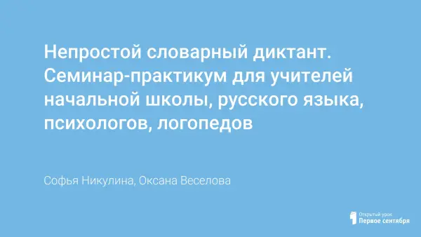 Непростой словарный диктант. Семинар-практикум для учителей начальной школы, русского языка, психологов, логопедов