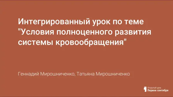 Интегрированный урок по теме "Условия полноценного развития системы кровообращения"