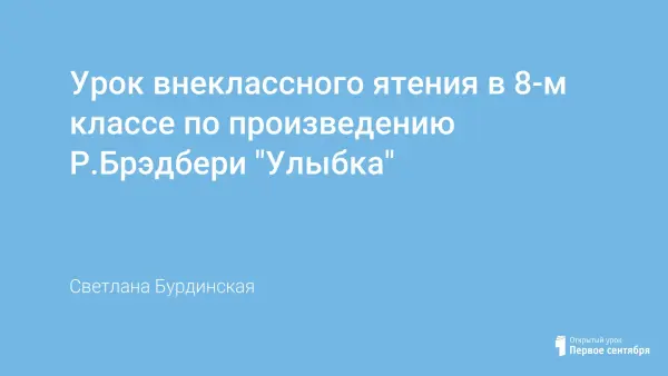 В школьном курсе рассказ Р. Брэдбери «Улыбка» не изучается, хотя в этом произведении поднимается проблема варварства и вандализма. Презентация поможет учителям в работе.