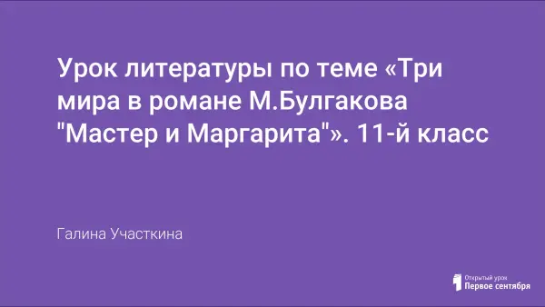 На уроке рассматривается особенности жанра и композиционной структуры романа М.Булгакова "Мастер и Маргарита", обращается внимание на символику числа три в романе, что помогает понять замысел писателя, заметить и осмыслить переклички линий романа, а также уяснить нравственные уроки М.Булгакова, главные ценности. Урок развивает интерес к личности и творчеству писателя.