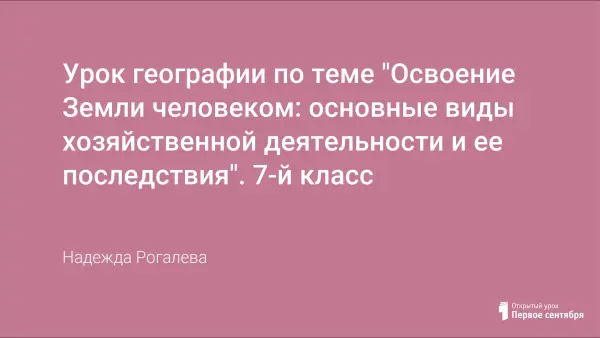 Нестандартный урок географии в 7-м классе в форме телепередачи знакомит учащихся с районами современного размещения населения, основными направлениями хозяйственной деятельности человека, раскрывает экологические последствия деятельности человека на природу. Используя проблемные вопросы, учащиеся самостоятельно находят ответы, выполняя задания, отрабатывают навыки работы с картами. Итогом урока является самостоятельное заполнение таблицы.