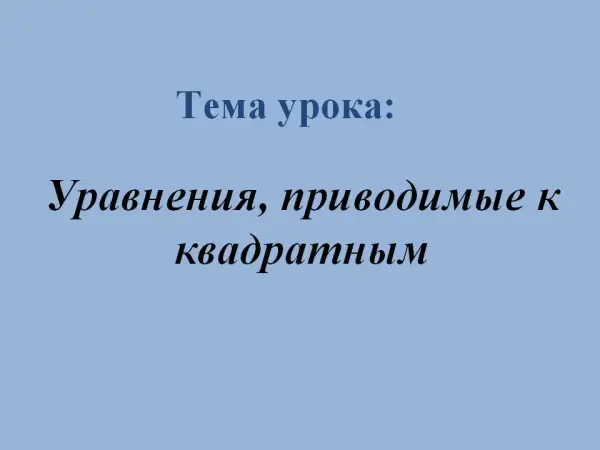 Урок алгебры по теме "Уравнения, приводимые к квадратным". 9-й класс