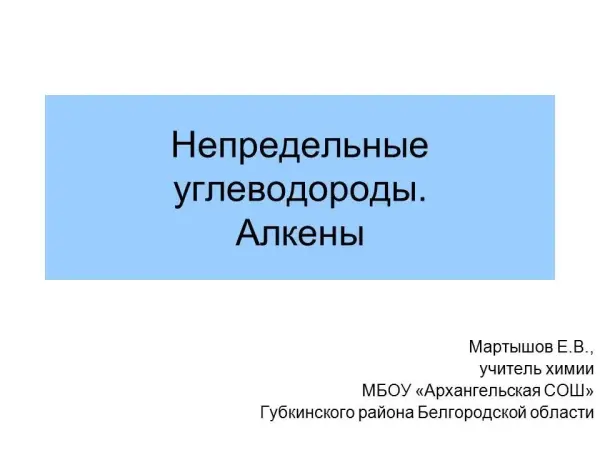 Цикл лекций по теме «Непредельные углеводороды. Алкены»