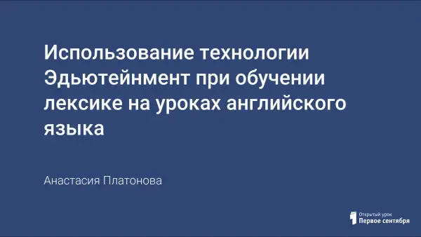 В статье рассматривается применение технологии эдьютейнмент при обучении лексической стороне языка на занятиях по английскому языку в школе. Приводится суть технологии и ее особенности. Раскрываются этапы проведения, пути применения, уточняются достоинства и недостатки.