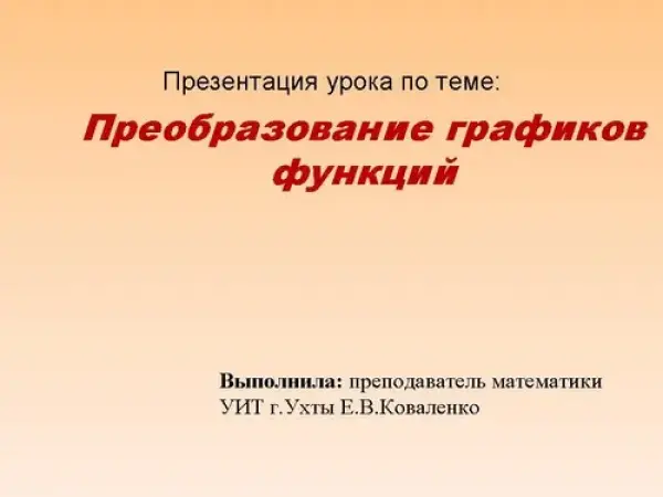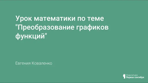 Цель урока: научить учащихся строить графики сложных функций с параллельным переносом, растяжением, сжатием, симметрией относительно осей координат графиков известных функций, показать построение графиков, содержащих модуль, а также с последовательным применением нескольких способов.