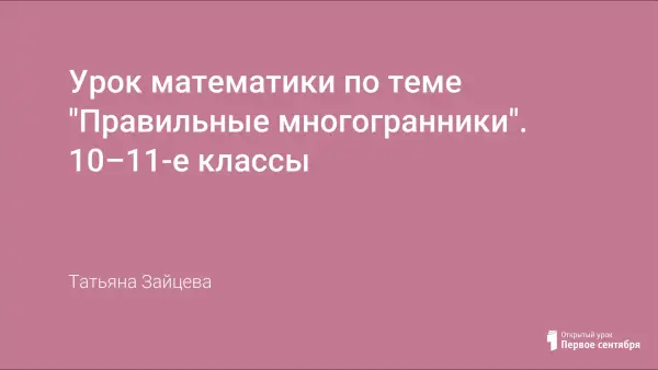 Урок изучения и первичного закрепления новых знаний для учащихся 10-11-х классов общеобразовательных школ и учащихся профессионально-технических училищ. Изучение нового материала проходит с привлечением презентации, содержащей материал о правильных многогранниках, их особенностях, свойствах, сведения из истории, примеры правильных многогранников из окружающего мира и раздаточных материалов для решения задач по готовым чертежам.