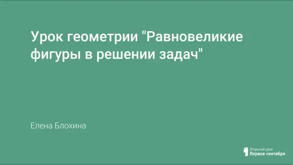 Урок повторения и обобщения ключевых задач о равновеликих фигурах. Дети учатся искать решение задач в ходе создания проблемно-познавательной ситуации. Цель урока: подвести учащихся к решению задачи в повторении и развитии ключевых задач о равновеликих треугольниках.
