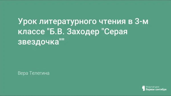 На уроке учащиеся знакомятся с биографией Б.В. Заходера и произведением "Серая Звёздочка", которое воспитывает добрые отношения детей друг к другу.