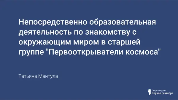 Урок знакомит детей с первыми собаками-космонавтами, расширяет представление детей о роли собаки в жизни человека, формирует понятие «космос», «космическое пространство».