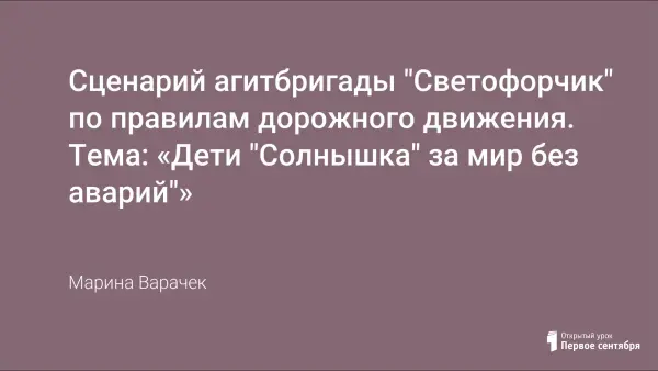 Сценарий агитбригады "Светофорчик" по правилам дорожного движения. Тема: «Дети "Солнышка" за мир без аварий"»
