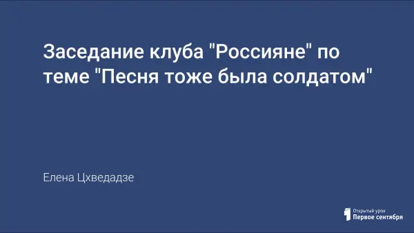 В плане деятельности школьного клуба «Россияне» отражены различные мероприятия, которые дают возможность оказывать большое эмоциональное воздействие на обучающихся. Наиболее эффективными являются литературные или литературно-музыкальные композиции. Сценарий заседания клуба продолжил цикл музыкально-литературных композиций, посвященных памятным датам отечественной истории.