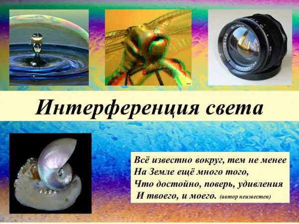 Урок изучения нового материала и наблюдения, описания одного из интереснейших свойств света. Цель урока: удивить, изучить, поэкспериментировать, познать тайны радужной окраски крыльев и глаз насекомых, минералов, перламутра, мыльных пузырей, фиолетового и сиреневого оттенков объективов.