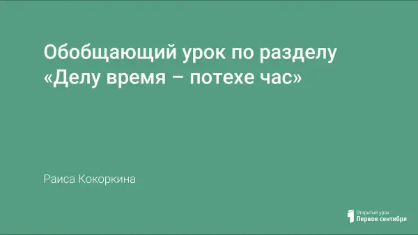 Цель урока: закрепить знания учащихся по теме «Обобщающий урок по разделу «Делу время – потехе час!»