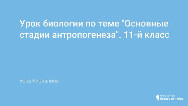 Автор представляет план-конспект урока по программе А.А. Каменского, Е.А. Криксунова, В.В. Пасечника, с использованием ЭОР (электронных образовательных ресурсов). В результате изучения темы «Основные стадии антропогенеза» учащиеся узнают основные стадии антропогенеза и связанные с ними события.