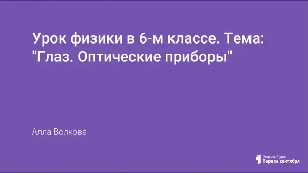Урок в 6-м классе призван познакомить учащихся с оптическими приборами, строением глаза как оптической системой. Расширить знания о свойствах глаза, гигиене зрения, полученные на уроках биологии. Показать учащимся, каким образом исследование оптических явлений способствовало развитию представлений человека о единстве и взаимосвязях в окружающем мире. Развивать интерес к предметам естественнонаучного цикла.