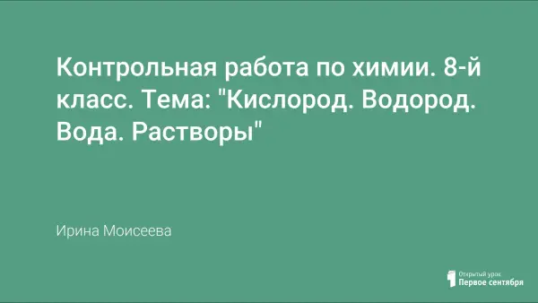 В данной контрольной работе осуществляется проверка знаний и умений. Контрольная работа рассчитана на 1 урок и представлена в 2 вариантах, каждый из которых разбит на 3 части: 1 - тест, состоящий из 18 вопросов; 2 - четыре утверждения, где есть пропущенное слово; в 3 - необходимо составить 6 уравнений химической реакции и уравнять их.
